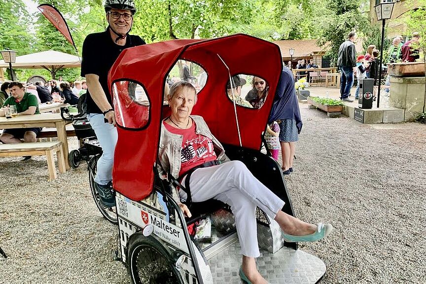 Ob ein Ausflug in den Botanischen Garten, eine Fahrt zu Sehenswürdigkeiten in der Nähe oder zum Eis essen in die Innenstadt: Fahrten mit der „Malteser Rikscha“ ermöglichen Senior:innen, die nicht mehr gut zu Fuß sind, eine Aktivität der besonderen Art an der frischen Luft.